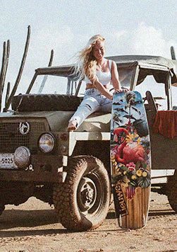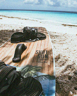 You can also design your own custom kiteboard. We'll help you with advice on which colors stand out the best against our timeless wooden background and how to prepare your art files. Just need your logo on the board? Our resident artist will help you place it nicely and will adjust the overall graphics so it all goes nicely together. Select the 'Boogie Pack' to get started with your own art or logo.